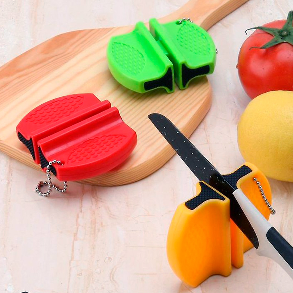 • Afilador de cuchillos portátil pequeño de doble cara, perfecto para llevar de acampada o guardar en el cajón de la cocina.